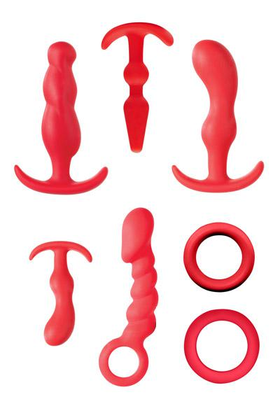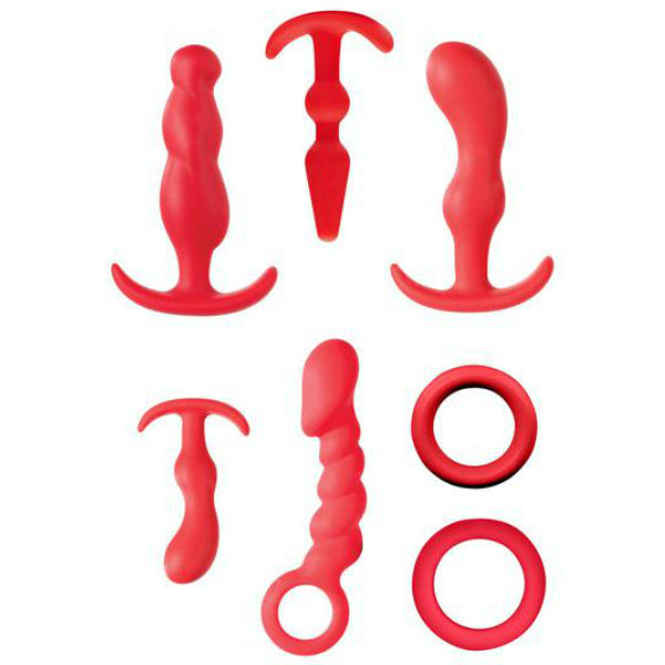 Disfrute del sexo anal con este completo kit de 7 referencias, todo en color rojo y con una calidad de silicona suave y resistente, perfecto para el sexo duro. Contiene; - Un anillo silicona extensible y adaptable con diametro 4 cm